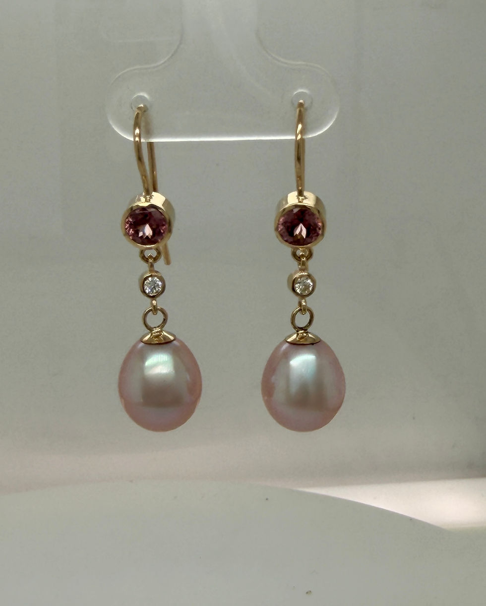 14KY Peach Pearl Drop Earrings with Pink Zircon